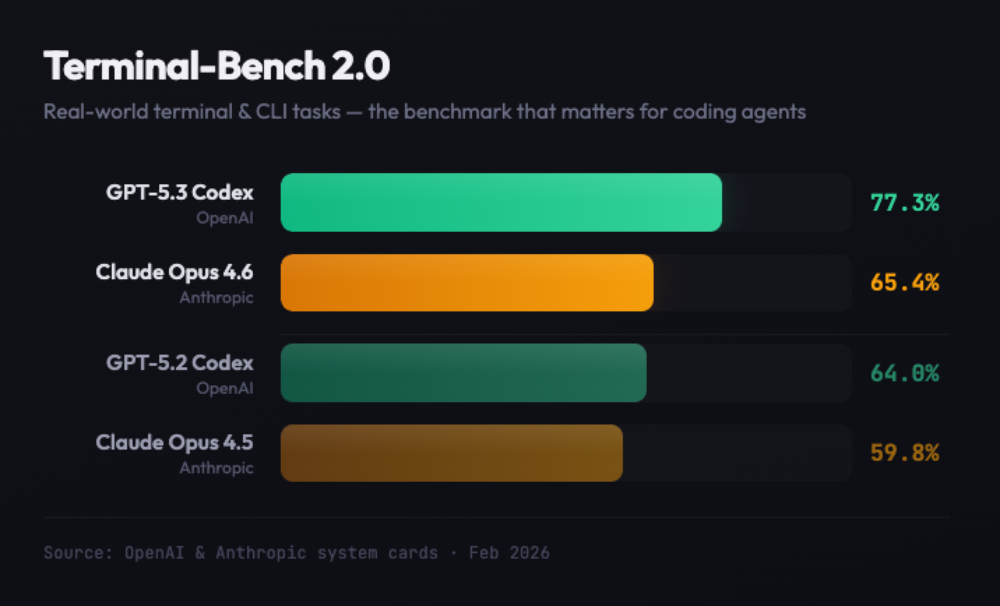 这也解释了为何 GPT-5.3 Codex 和 Opus 4.6 不该做“谁替代谁”的比较。两者本来就更适合分工,而不是单选。